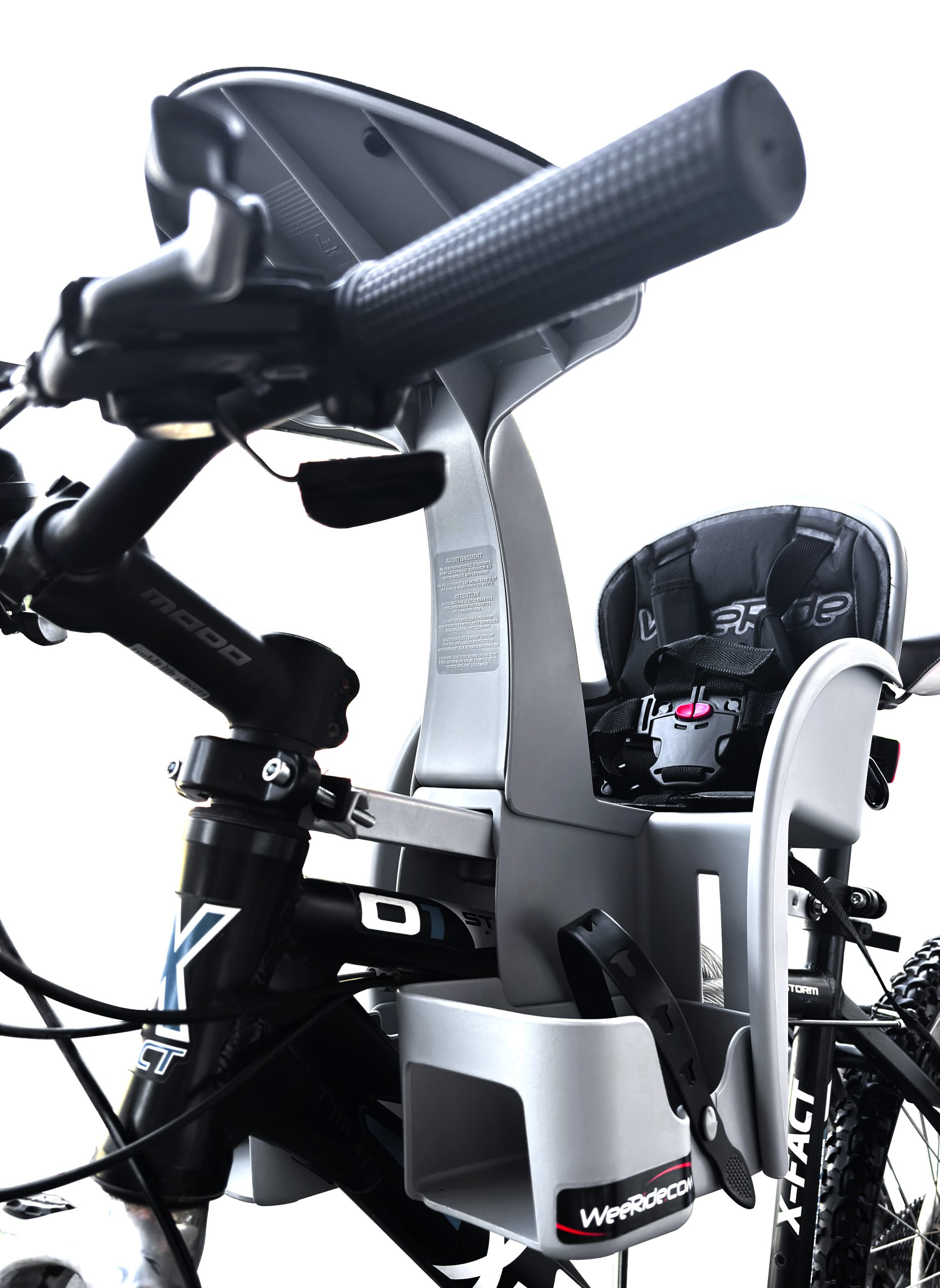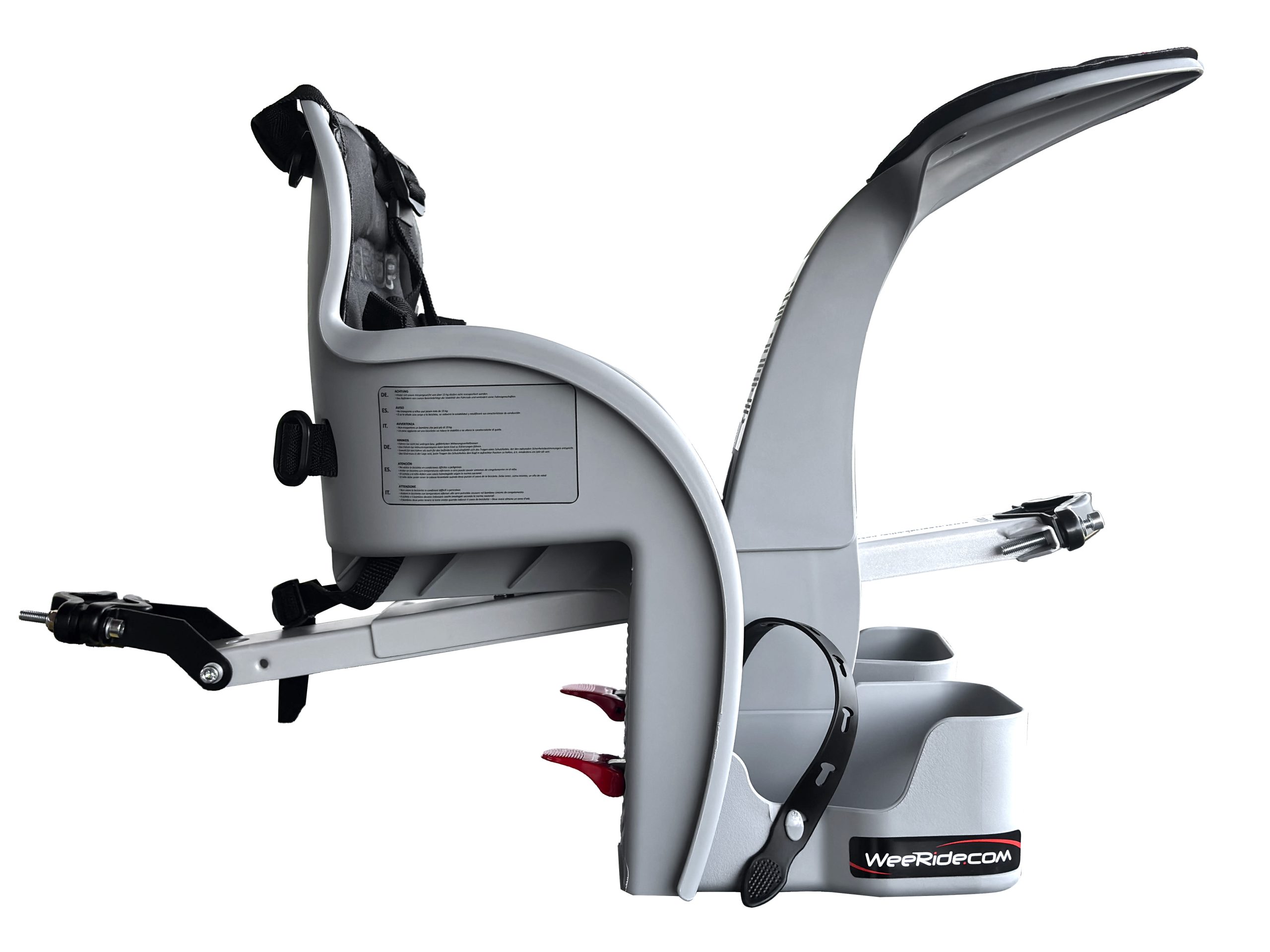 Dětská přední sedačka na kolo WeeRide Safe Front ve variantě PLATINUM je nejnovější adicí v naší nabídce. Tato nejvyšší verze sedačky Vám nabízí kromě absolutního pohodlí pro Vaše dítě také voděodolné polstrování s možností čištění mokrým kapesníkem. Součástí balení je také STEM adaptér určený pro kola s větším průměrem rámu řídítek, nebo při nedostatku místa potřebného pro pro uchycení nosné konzoly v přední části kola.